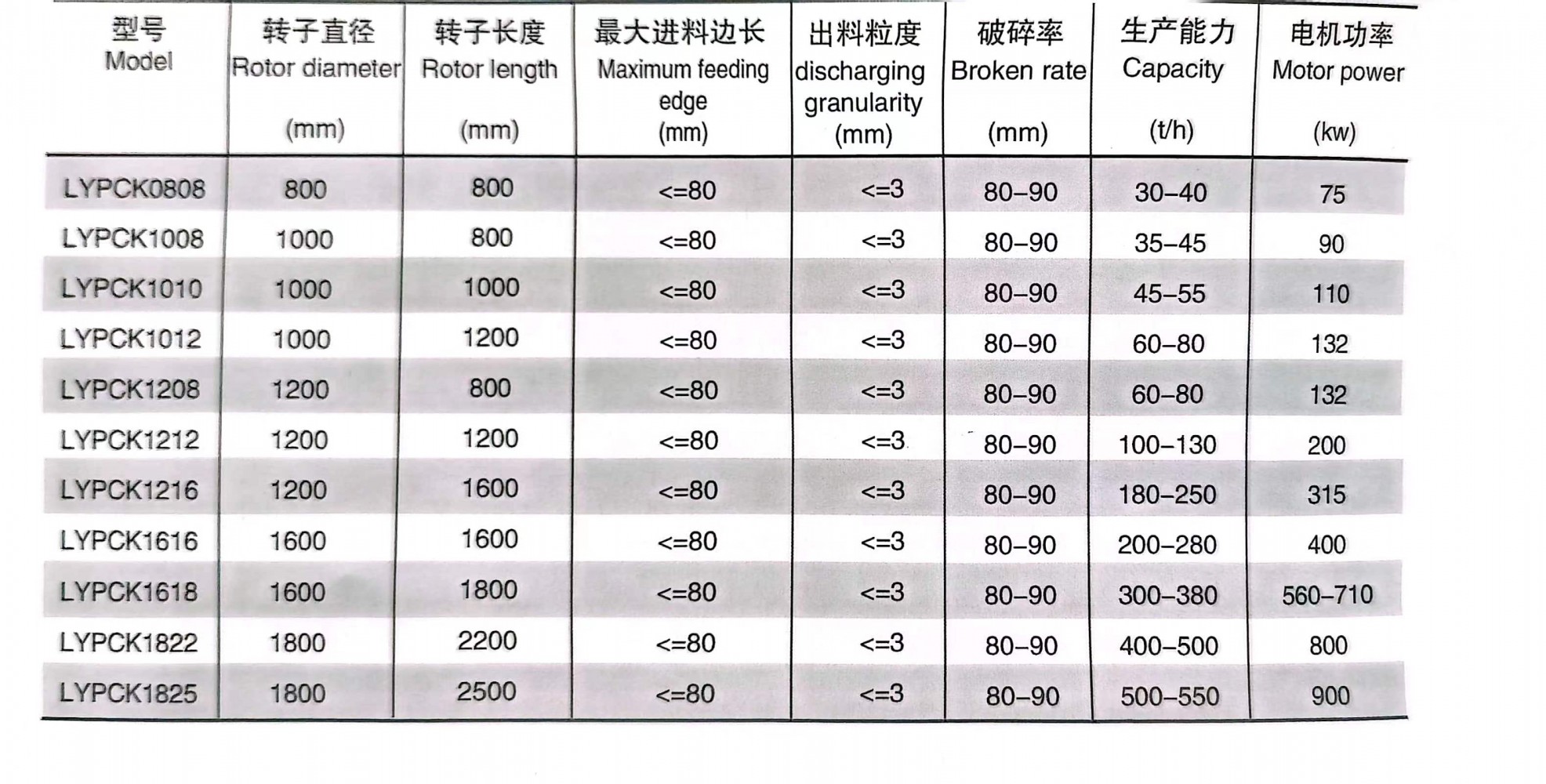 新型可逆式制砂機(jī)的多種型號