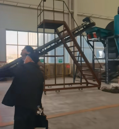 日本客戶來路友參觀考察,由梁總帶領(lǐng)觀看來破碎機車間與分選機車間