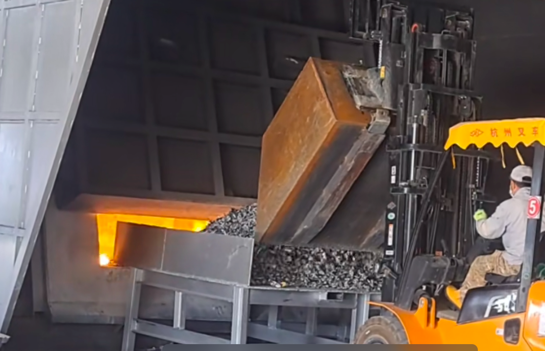 經(jīng)過(guò)路友破碎機(jī)處理后的物料被投入高溫爐溶煉